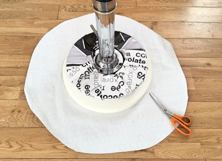 - Du tissu (env 4 mètres pour 4 tabourets de 35cm de ∅)
