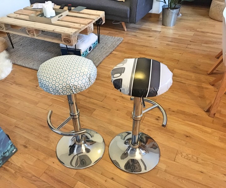 Si comme moi, vous possédez des tabourets de bar que vous avez récupéré pendant votre emménagement mais qui ne sont pas à votre goût, je vous livre une astuce toute simple pour personnaliser votre tabouret sans vous ruiner !